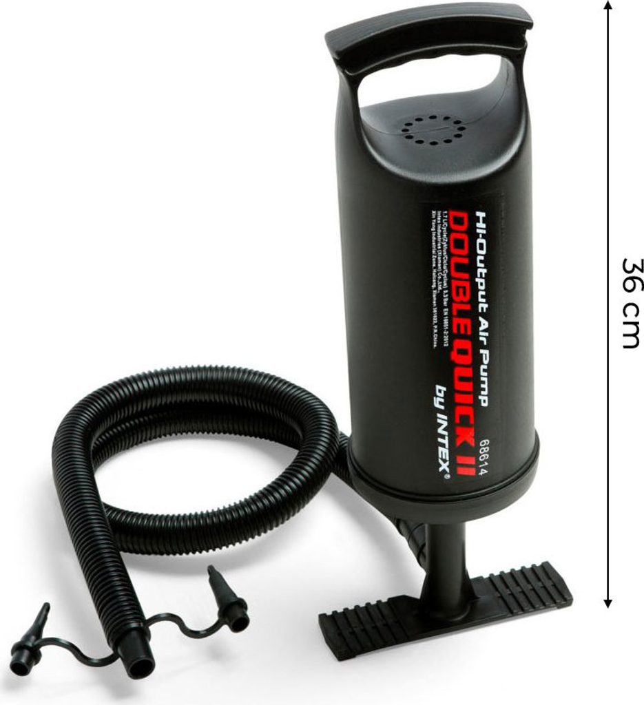 Díky pístovému čerpadlu Intex se již nemusíte namáhat. Tato univerzální pumpa vám umožní bez námahy naplnit vzduchem jakýkoli nafukovací předmět. Doba čerpání je mnohem kratší než u standardních čerpadel, a to díky použití technologie vstřikování vzduchu při pohybu nahoru i dolů.