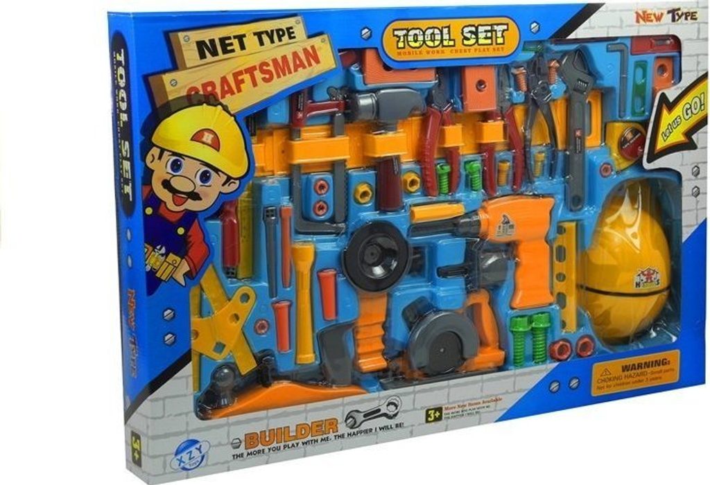 Se sadou skládající se z působivého počtu 55 prvků se vaše dítě bude cítit jako skutečný kutil. Skládá se ze všeho potřebného pro práci kreativního kutila. Celá dílna, kterou dítě zná z garáže táty nebo dědy, je umístěna v jedné barevné krabici. Multifunkční sada nářadí pro chlapce je určena pro všechny děti, které mají talent na kutily. Všechny nástroje se zdají skutečné díky jejich přesné reprodukci inspirované plnohodnotným příslušenstvím. Sada má konzistentní barvy typické pro tento typ předmětů.