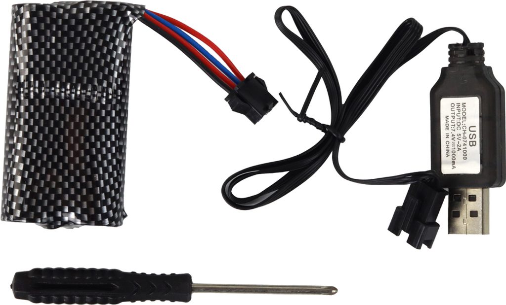 Pistole je napájena 7,4V baterií, která je součástí sady. Originální nabíječka je součástí baterie.