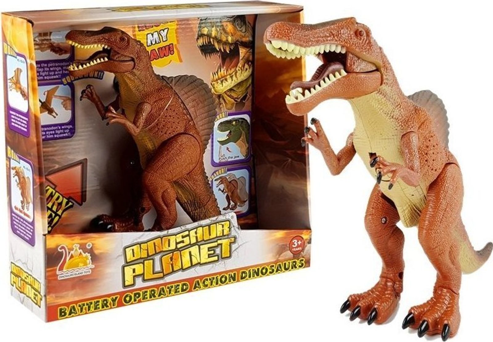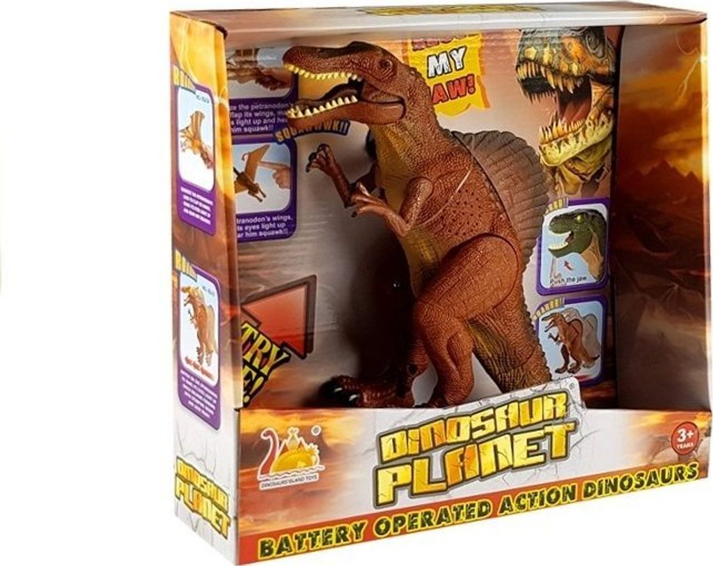 Hračka má dlouhou rovnou lebku a mohutnou, svalnatou stavbu těla . Je napájen 1,5 V "AA" bateriemi, které jsou součástí sady. Po spuštění začne velký dinosaurus dělat kroky a řvát . Světelné efekty , jako jsou blikající oči, tyto neobvyklé dojmy jen umocňují.