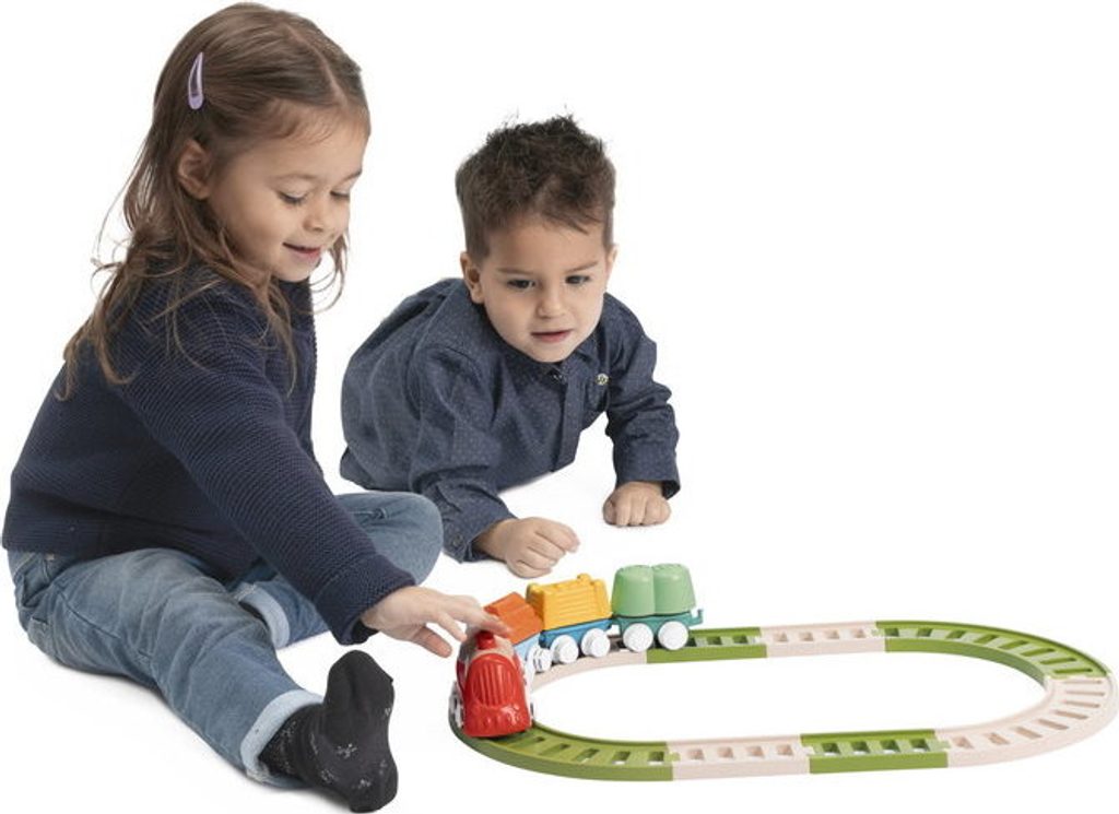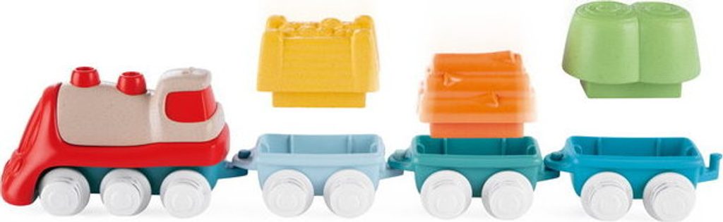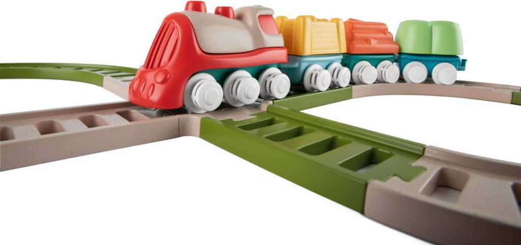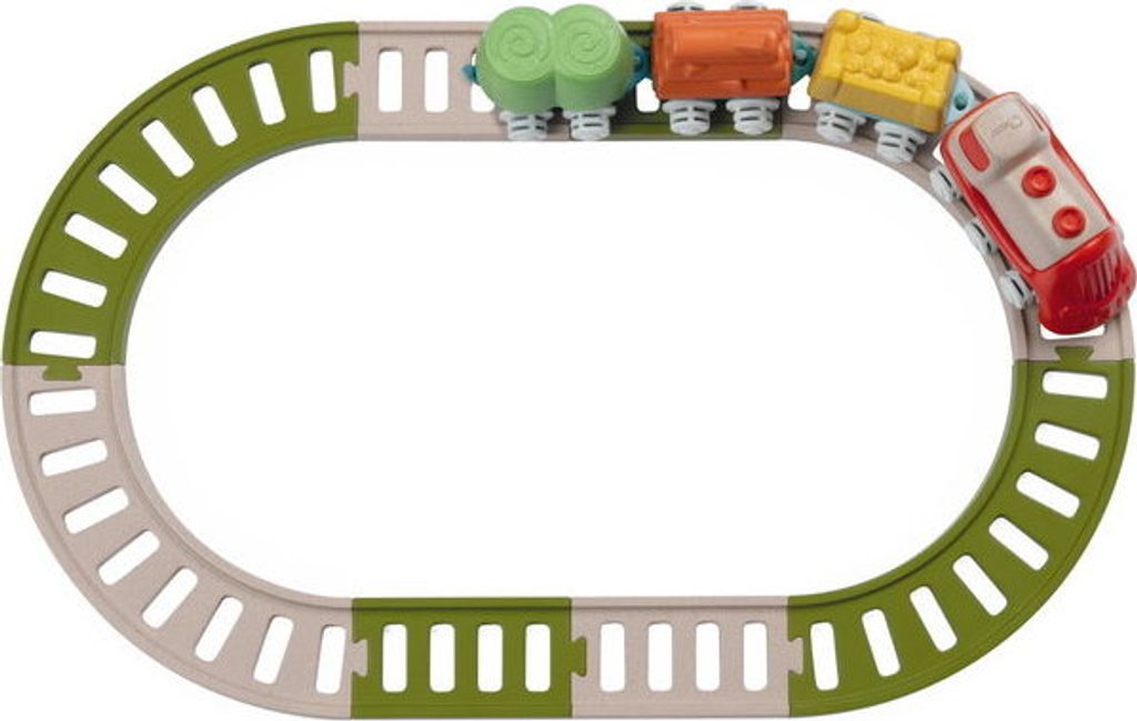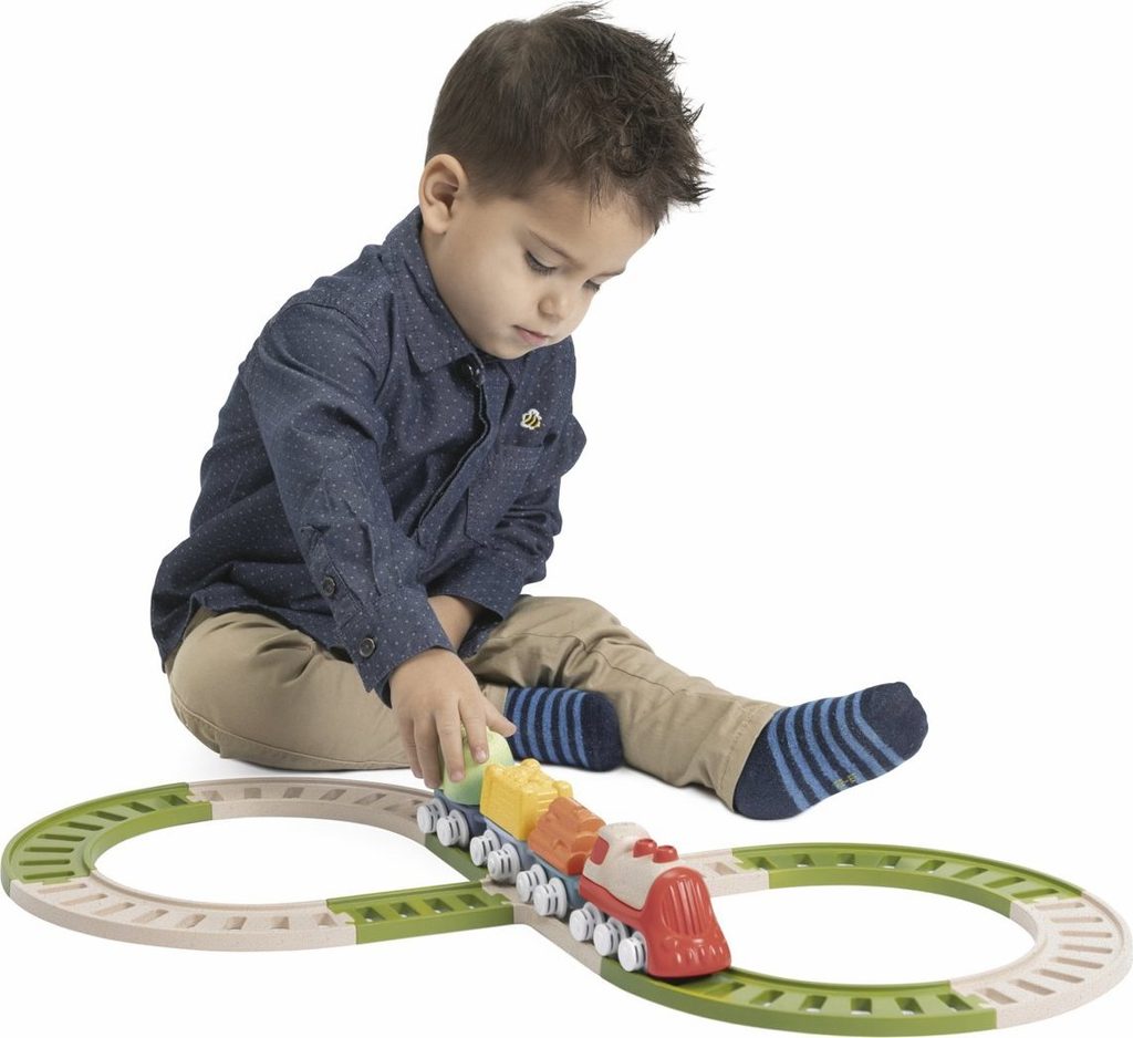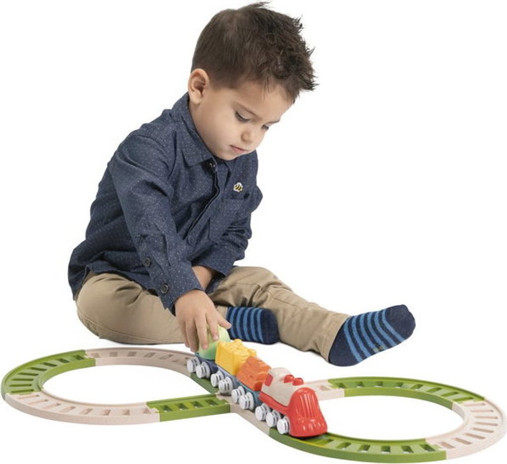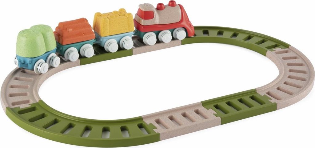Tato vícedílná stavebnice a hrací sada uvolňuje kreativitu a rozvíjí manuální dovednosti dětí při poutavé hře. První Eco+ Toddler Train obsahuje 18 prvků: 1 lokomotivu, 3 auta, 3 tvary, 1 křižovatku, 10 kusů kolejí. Dítě může propojit lokomotivu s vagónky, na které může naložit 3 tvary (ovoce, seno a dřevo), poté nasadit koleje a projet se vláčkem po kolejích postavených podle jeho představy. Vláček má otočná kola, takže se může volně pohybovat jak po kolejích, tak po podlaze. Batole se také učí třídit tvary - vagónky a tvary jsou vzájemně kompatibilní. Fantastickou zábavou je také stavění drah, kde je možné je uspořádat ve 2 konfiguracích: smyčka a osmička. Batole rozvíjí svou kreativitu a jemnou motoriku. Hračka je vyrobena z 80 % z recyklovaného plastu. Materiál je odolný a bezpečný, neobsahuje barvy. Obal hračky je šetrný k životnímu prostředí a lze jej recyklovat. Použitý papír pochází ze zodpovědně obhospodařovaných lesů. Hračka byla vyrobena v Itálii. Věková kategorie: 18M-4L Rozměry hračky: 64x30x6,5 cm