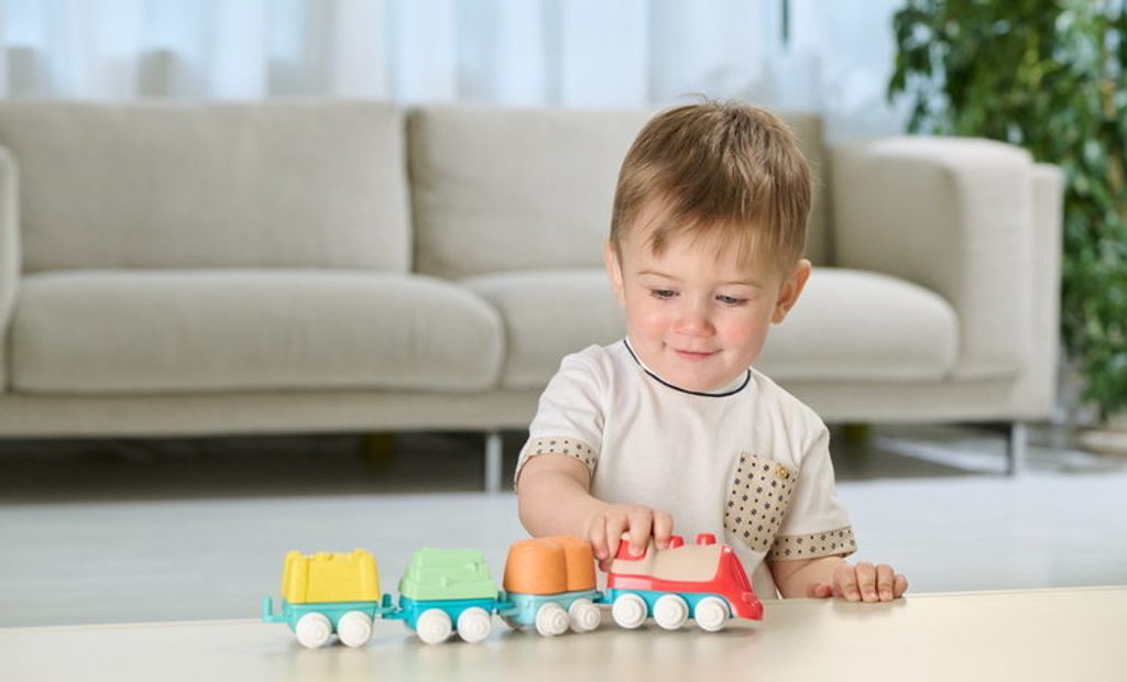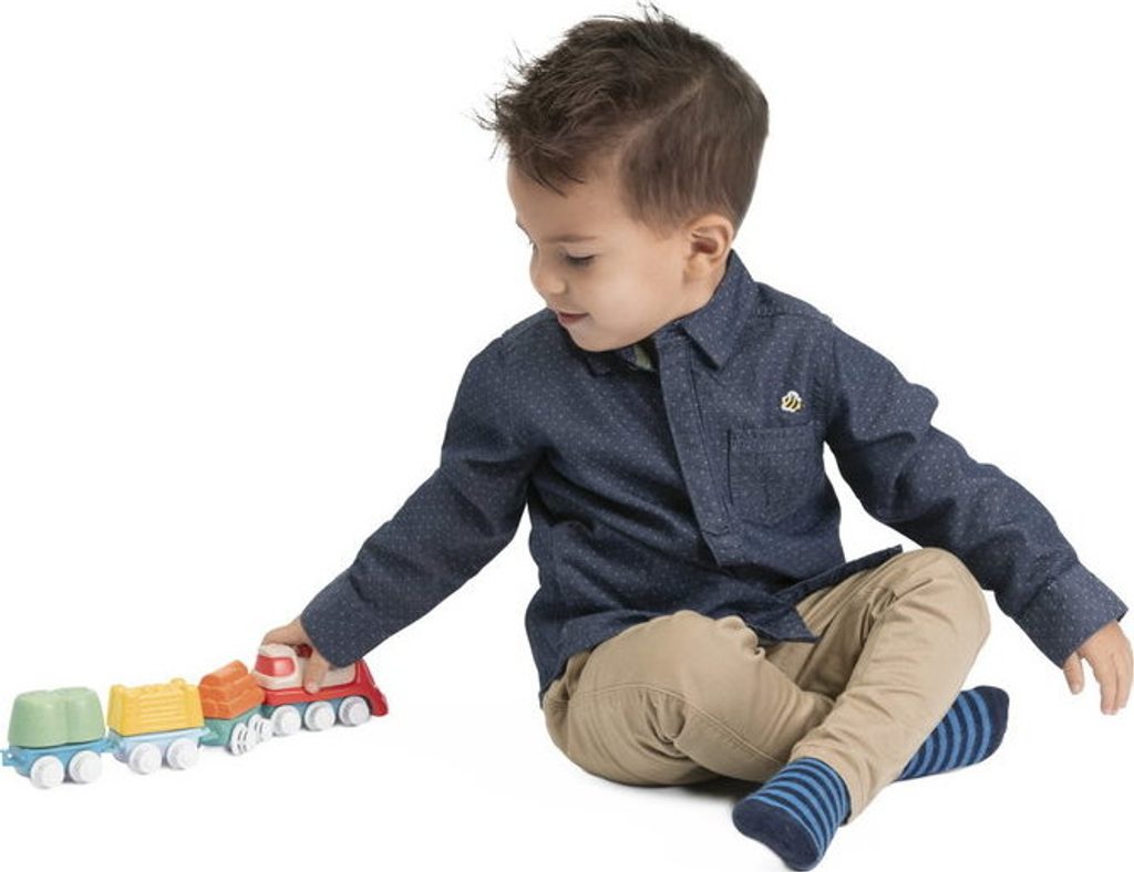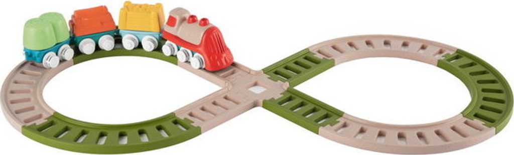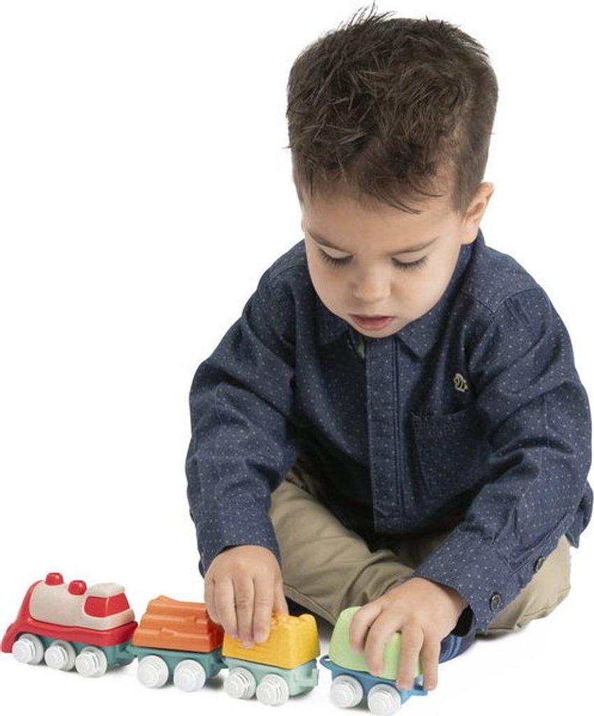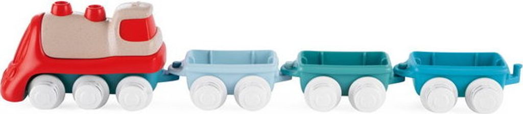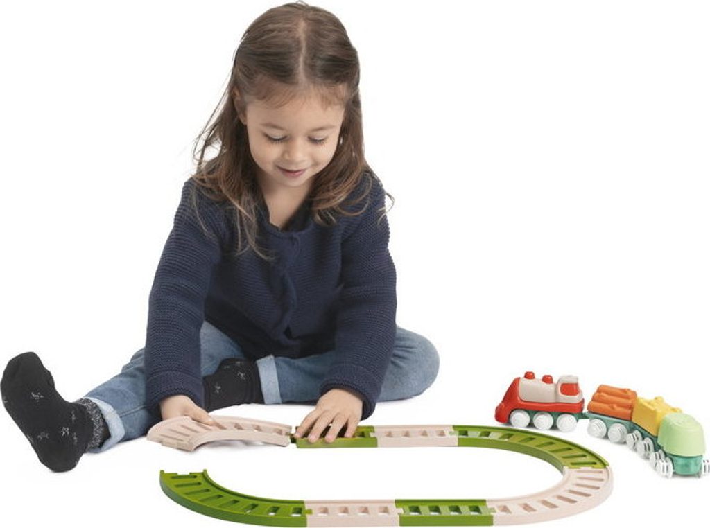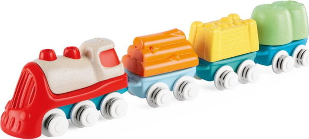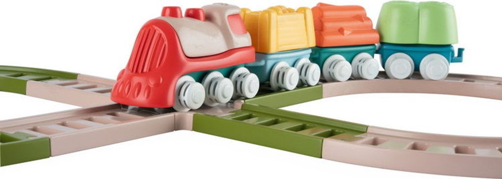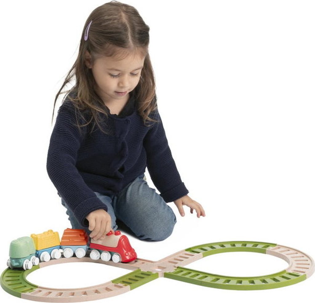 Tato vícedílná stavebnice a hrací sada uvolňuje kreativitu a rozvíjí manuální dovednosti dětí při poutavé hře. První Eco+ Toddler Train obsahuje 18 prvků: 1 lokomotivu, 3 auta, 3 tvary, 1 křižovatku, 10 kusů kolejí. Dítě může propojit lokomotivu s vagónky, na které může naložit 3 tvary (ovoce, seno a dřevo), poté nasadit koleje a projet se vláčkem po kolejích postavených podle jeho představy. Vláček má otočná kola, takže se může volně pohybovat jak po kolejích, tak po podlaze. Batole se také učí třídit tvary - vagónky a tvary jsou vzájemně kompatibilní. Fantastickou zábavou je také stavění drah, kde je možné je uspořádat ve 2 konfiguracích: smyčka a osmička. Batole rozvíjí svou kreativitu a jemnou motoriku. Hračka je vyrobena z 80 % z recyklovaného plastu. Materiál je odolný a bezpečný, neobsahuje barvy. Obal hračky je šetrný k životnímu prostředí a lze jej recyklovat. Použitý papír pochází ze zodpovědně obhospodařovaných lesů. Hračka byla vyrobena v Itálii. Věková kategorie: 18M-4L Rozměry hračky: 64x30x6,5 cm