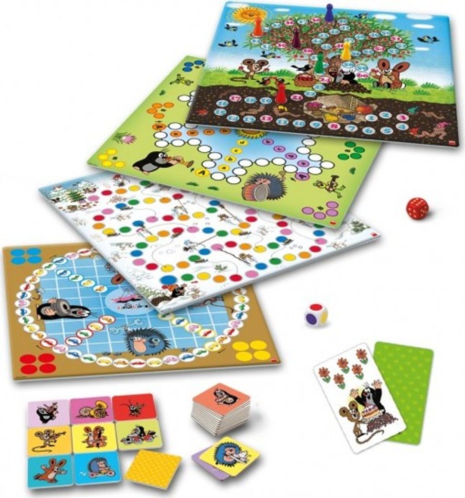 Jakmile si pohádkového krtečka jednou pustíte domů, už ho jen těžko dostanete pryč. Děti si ho zamilují okamžitě a vy mu nakonec podlehnete také. Pomůže vám v tom i balíček 5 stolních her s obrázky krtka a jeho kamarádů. Pocvičte s dětmi paměť nad pexesem, taktiku při karetní hře Score nebo si vyberte ze čtyř různých deskovek včetně krtčího člobrda. Kromě hravosti si děti promrskají počítání, znalost barev a nepochybně zapojí i svou bujnou fantazii.