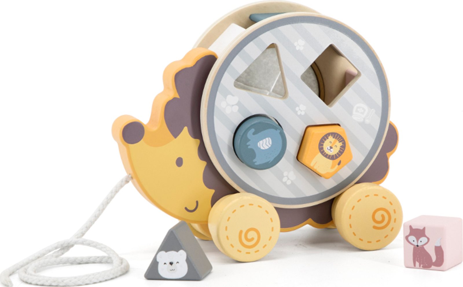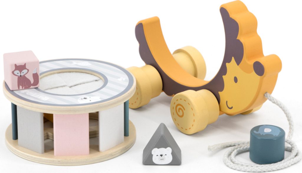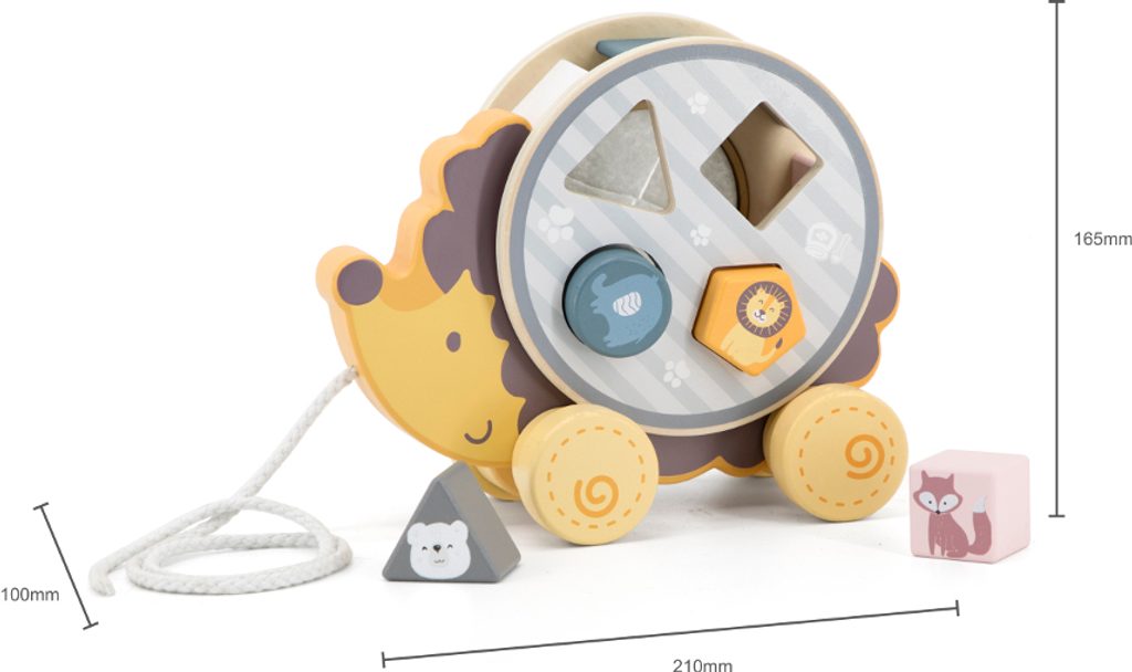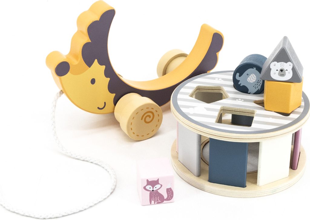 Jerzy ježek zve všechny děti na procházku! Hračka bude nenahraditelným kamarádem při mnoha výletech a jako dárek k prvním narozeninám povzbudí dítě, aby udělalo první krůčky samo. Po vyjmutí třídícího kolečka z ježčích placiček se vaše ratolest naučí přesnosti a zlepší koordinaci ruka-oko. Kromě toho poznává tvary, barvy a zvířata, která v zoo žijí. Po vložení tvarovaných bloků do třídiče jednoduše otočte a najděte otvor, který uvolní všechna zvířátka. Otvor je ucpaný bílou plstí - jemnou a hebkou pro malé dětské ručičky.