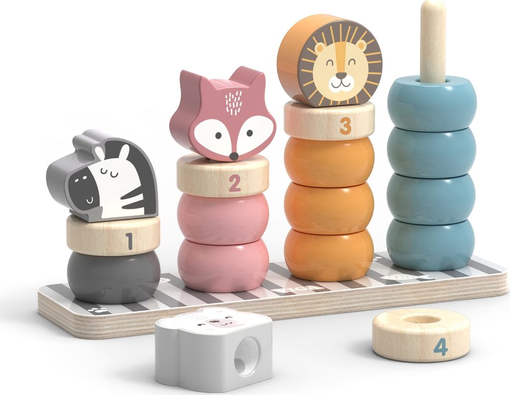 Nabízíme úžasnou sérii hraček LEDNÍ MEDVĚD od VIGA Educational pyramids. Vzdělávací pyramida od Vigy je perfektní dárek pro dítě - podpoří vzdělání. Učení barev, počítání a motorické koordinace. Hračka má dřevěnou základnu s kolíčky s barevnými kostkami. Úkolem dítěte je uspořádat oválné bloky tak, aby na kolících bylo odpovídající číslo - v souladu s číslem popsaným na jednom z nich. Každý sloupek je barevný, aby ladil s bloky, což vašemu dítěti usnadní jejich sladění. Zábavu navíc udělají atraktivnější kostky ve tvaru zvířátek: zebra, liška, lev nebo medvídek, vše barevně sladěné. Každá hromádka kostek, která je umístěna na dřevěných falangách, má odpovídající číslo: 1, 2, 3, 4.