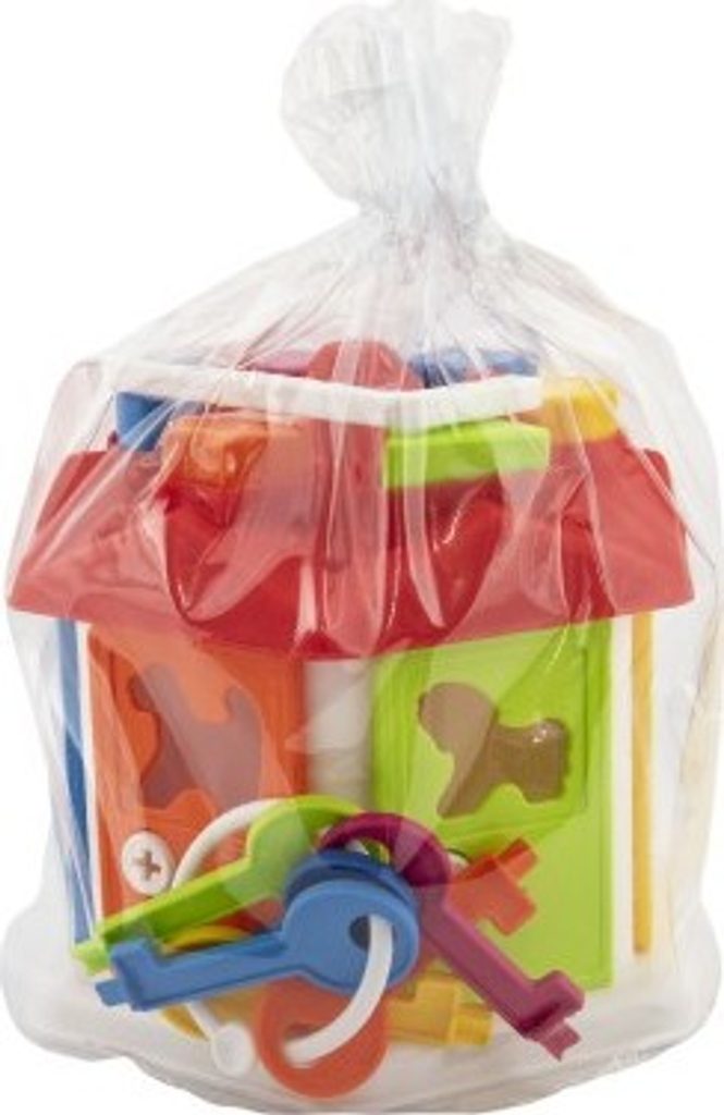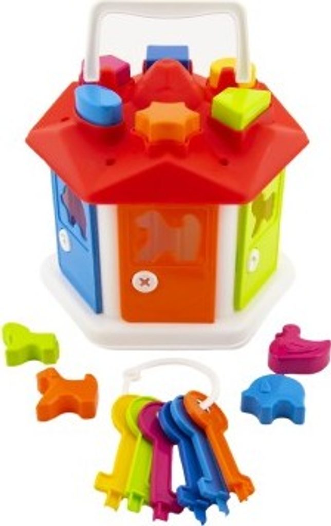 S vkládačkou domeček se malé děti učí rozpoznávat různé tvary a barvy. Domeček má na střeše otvory, do kterých děti vkládají příslušné tvary, které nepropadnou. Po bocích má domeček dveře, které jsou barevně odlišeny a mají své vlastní vkládací zvířátko. Vysvobodíte je příslušným klíčem. Každé dveře mají svůj vlastní klíč. Hra rozvíjí zábavnou formou trpělivost, orientaci v celku, logické myšlení a motoriku. Rozměry výrobku 19 x 20 x 19 cm. Vhodné pro děti od 12 měsíců.