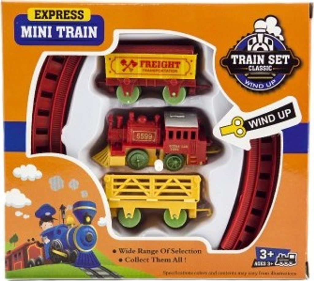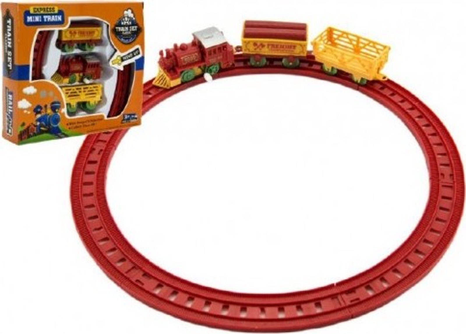 Vlak na klíček + 2 vagónky s kolejemi - mix 2 barvy