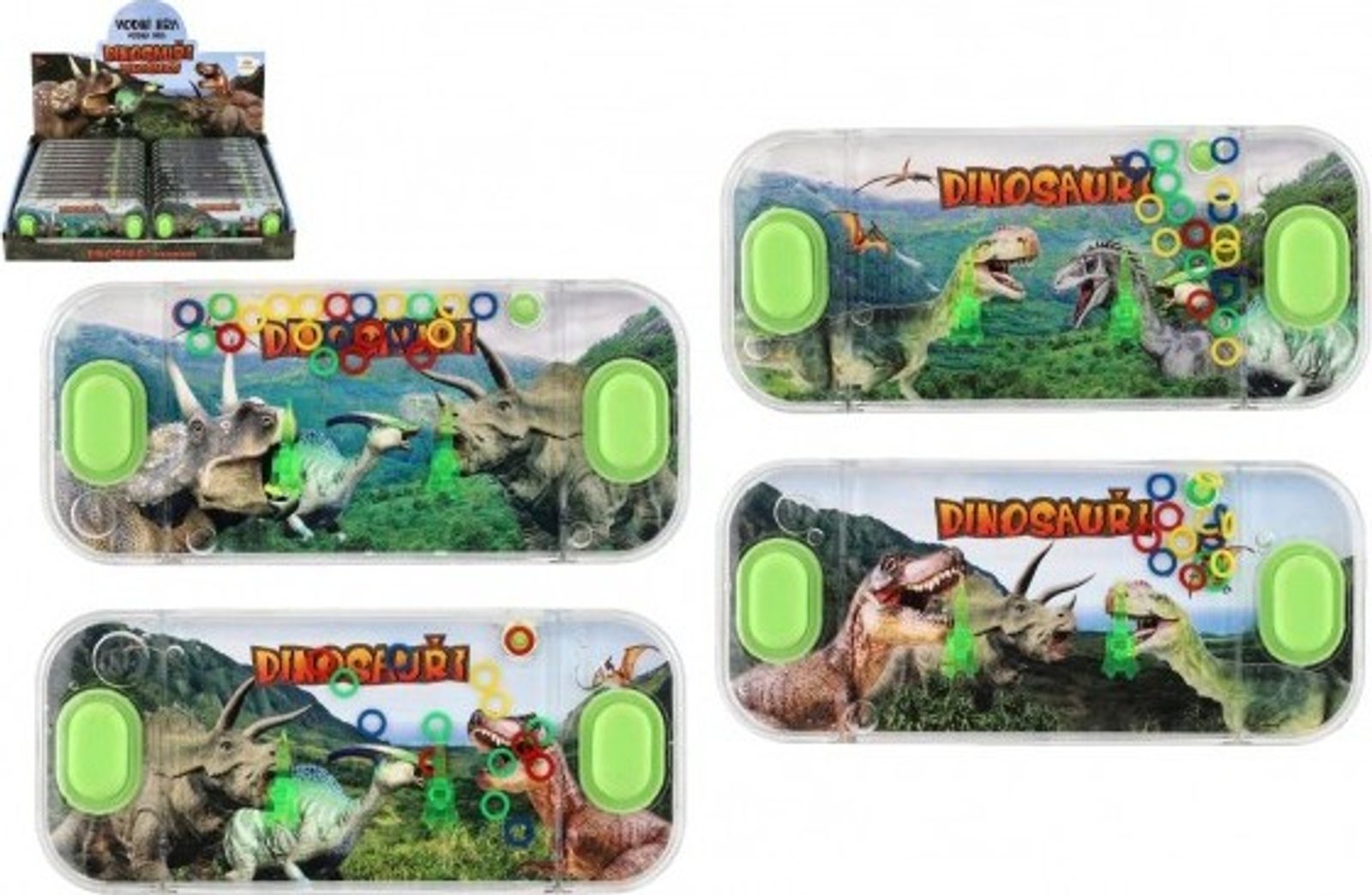 Tradiční dětská hra, která neomrzí. Princip hry je jednoduchý. Mají za úkol dostat na špičaté stožárky kroužky vznášející se ve vodě a to pouhým stiskem tlačítka. Tato hra podporuje soustředění a trpělivost. Vybrat si můžete z několika motivů s dinosaurem.
