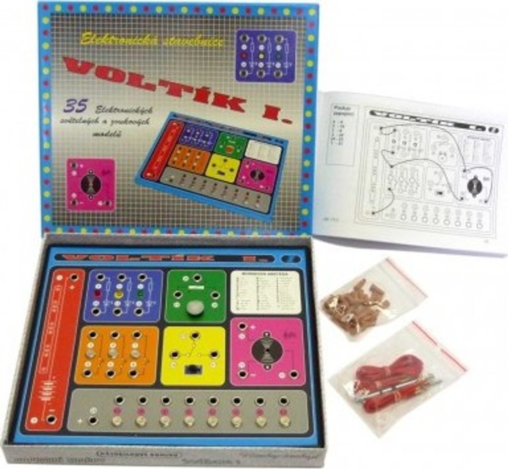 Stavebnice VOLTÍK I. je určena dětem od 6 let a umožňuje sestavit podle jednoduchých návodů nejméně 35 elektronických modelů bez pájení s barevnými světélky a tónovým bzučákem. Nevyžaduje žádné znalosti elektroniky! Modely mají různou obtížnost sestavení, od nejjednodušších, například světelný a zvonkový obvod, různé houkačky, až po měřič vlhkosti, vysílač a přijímač Morseovy abecedy, elektronický klavírek či telegraf. Napájení: 4×AA baterie (nejsou obsahem balení).