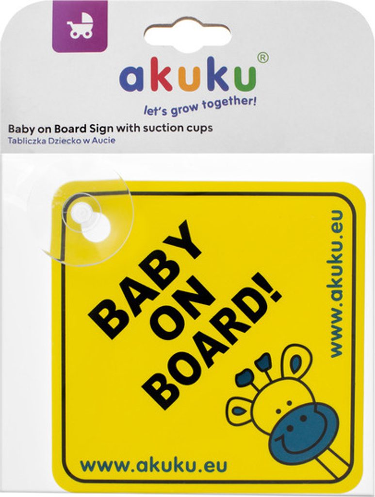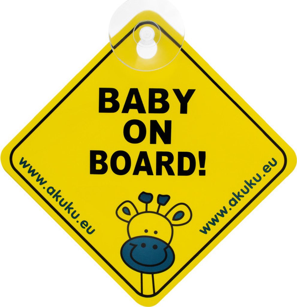 Výstražná značka s informací pro řidiče, že ve voze mohou být děti. Je to plastová deska s nápisem a roztomilým potiskem žirafy. Ke skle se připevňuje pomocí přísavky nebo ji lze zavěsit.