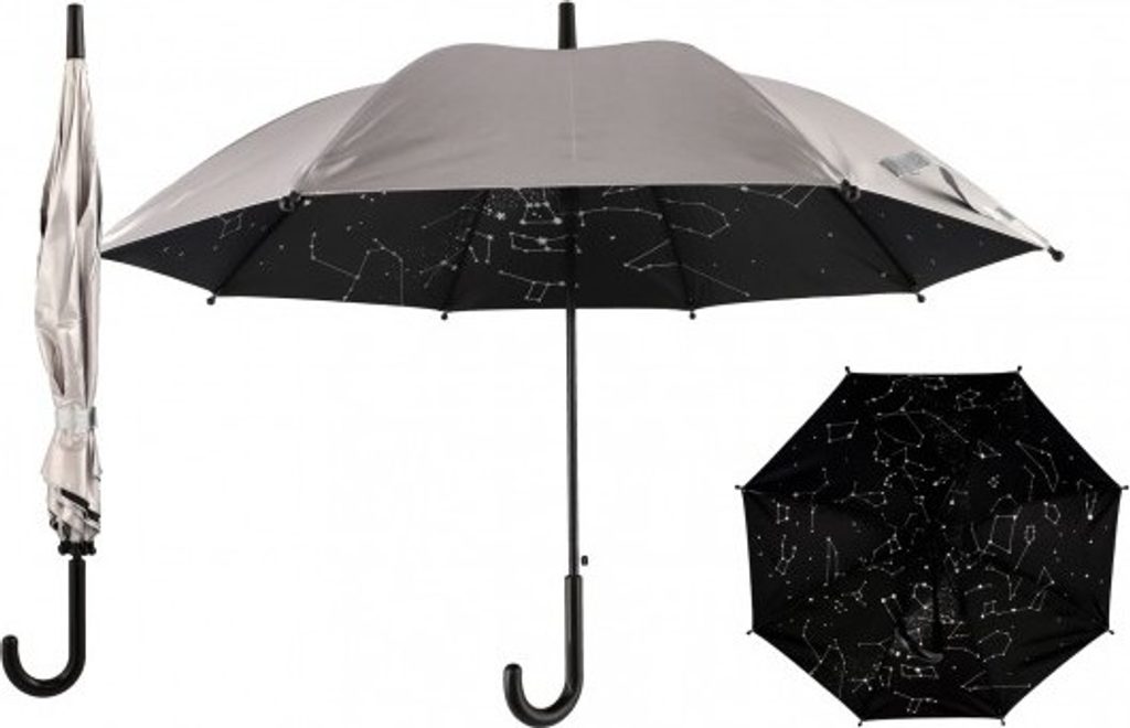 Když do deště, tak s tímto stylovým deštníkem! Krásný vystřelovací deštník. Zaujme svým designem v kombinaci stříberné barvy a vnitřím motivem souhvězdí.