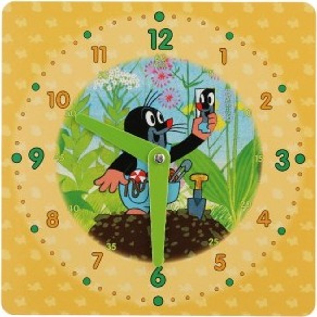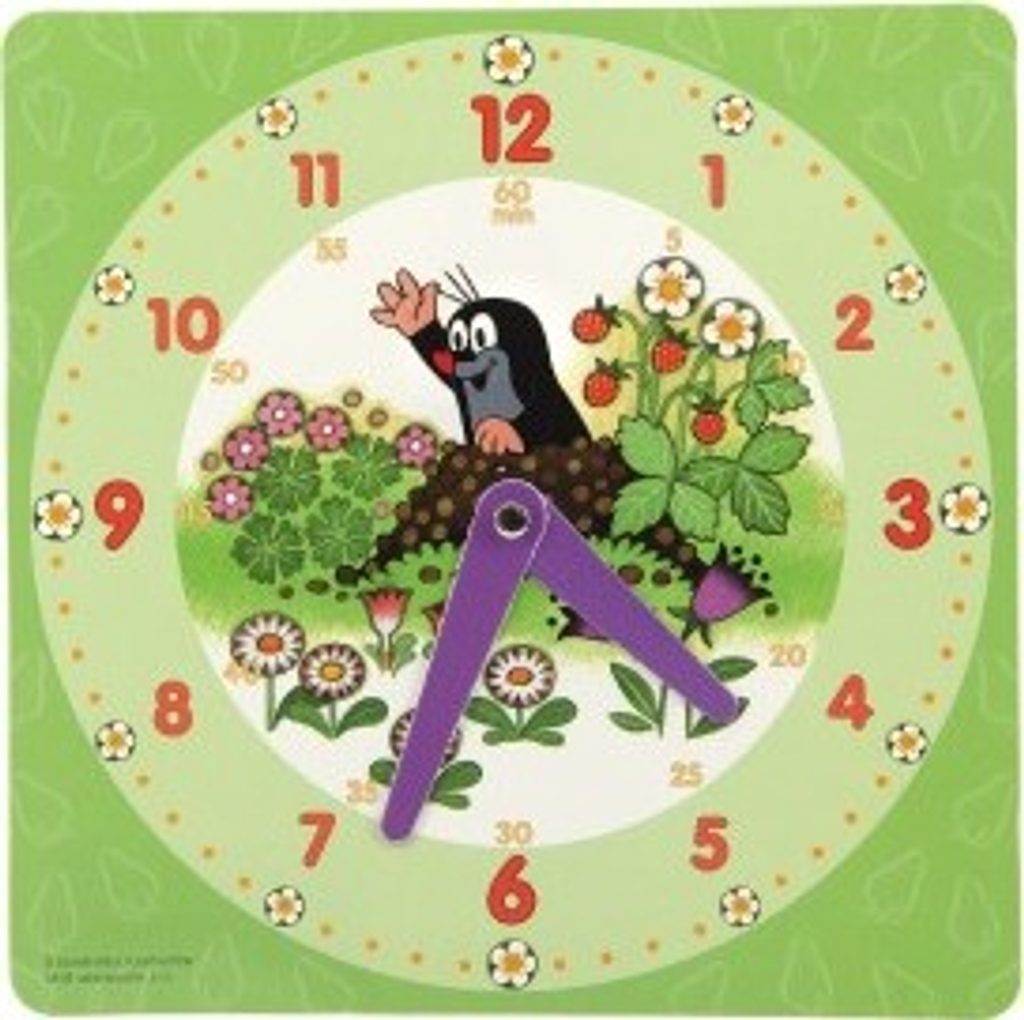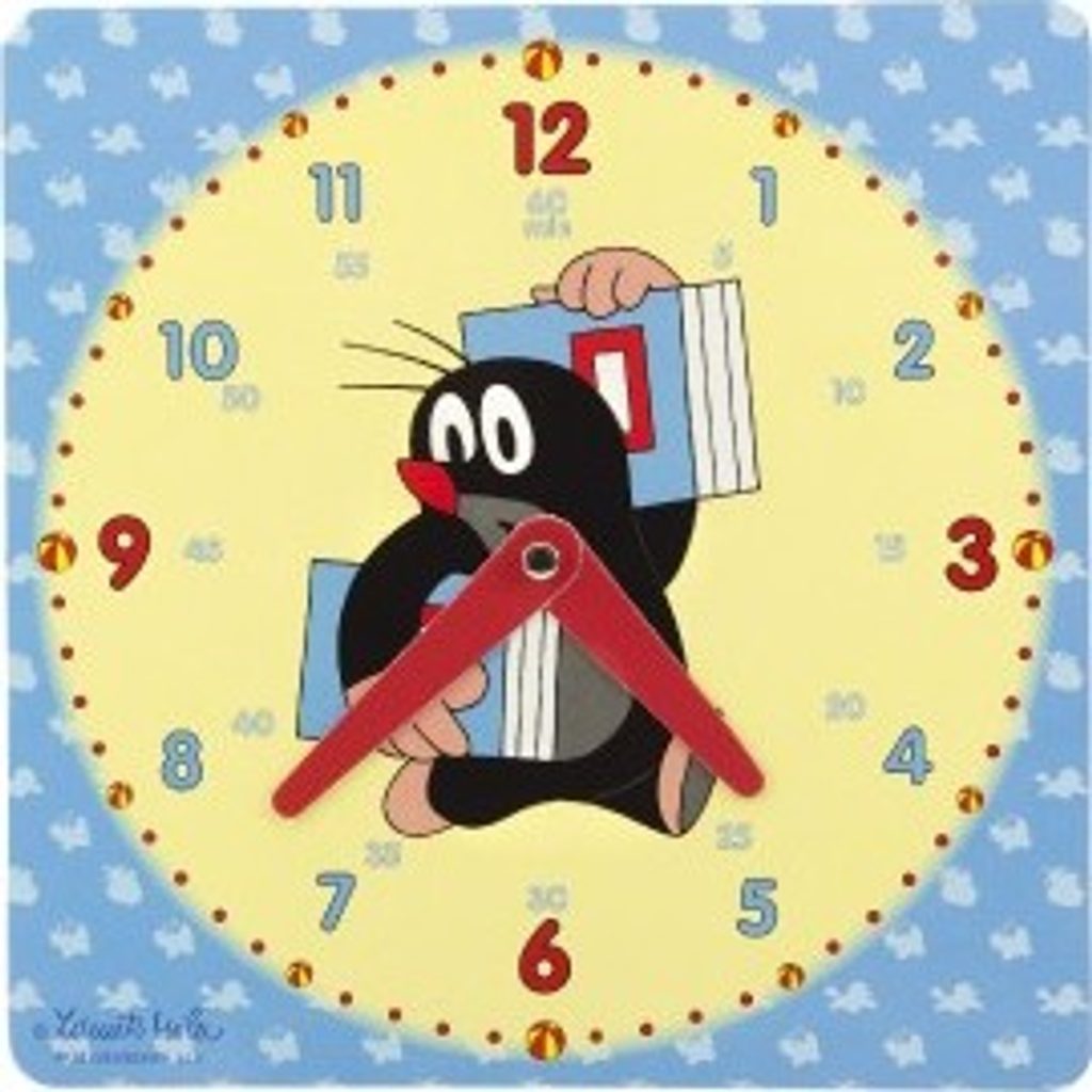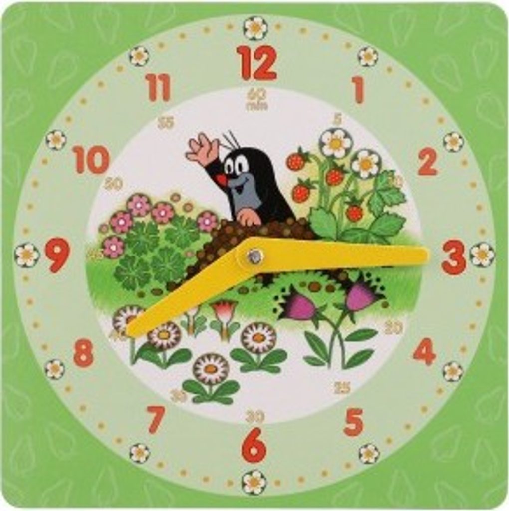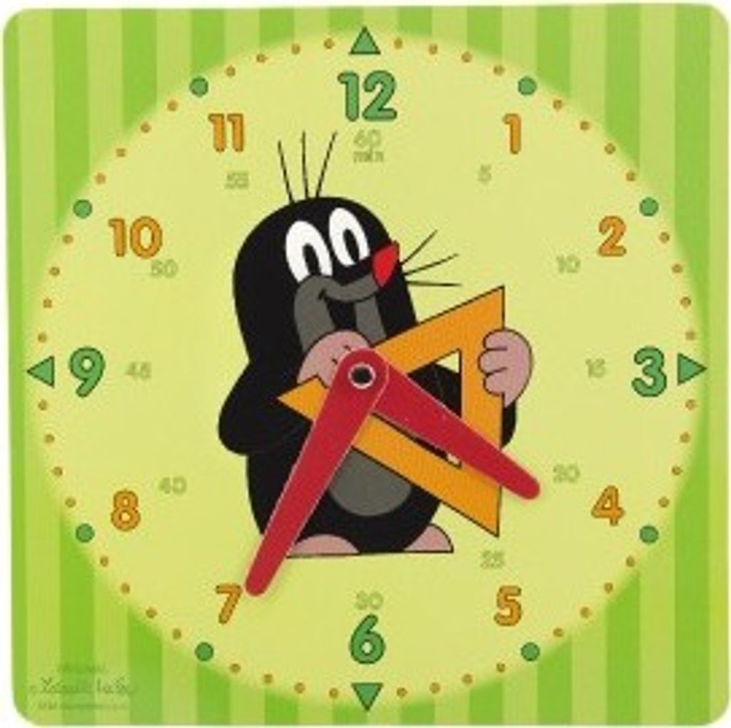 Školní hodiny s motivem Krtka, které slouží k výuce času prvňáčkům základních škol.