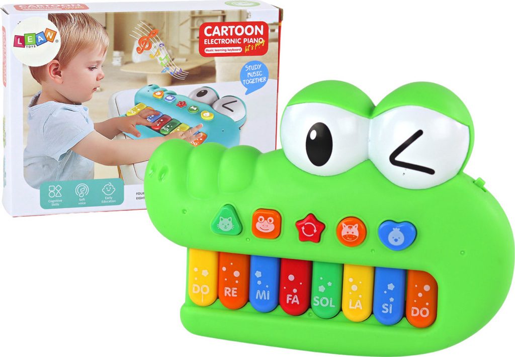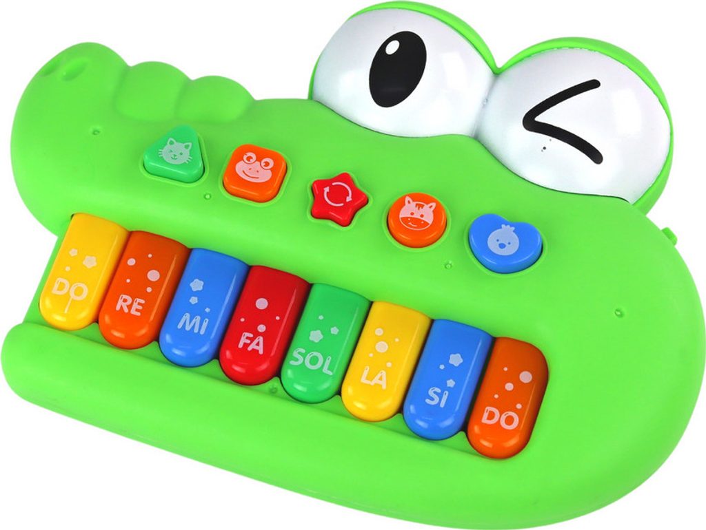 Tento klavír je neobvyklý hudební nástroj ve tvaru krokodýlí hlavy, který přitahuje pozornost svým jedinečným designem. Jeho zuby fungují jako klávesy, na kterých jsou umístěny noty a vytvářejí škálu zvuků, které může dítě zkoumat a objevovat. Každé z těchto tlačítek má také svou vlastní individuální barvu, což usnadňuje učení a zapamatování.