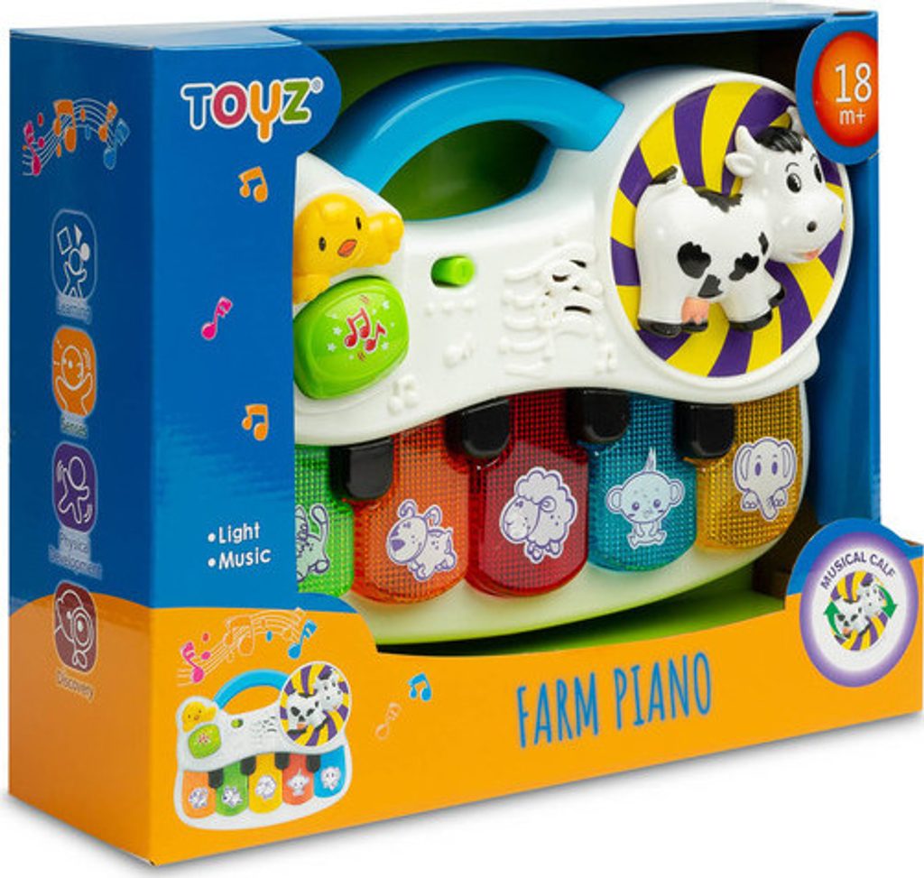 Piano Farma je vzdělávací hračka od TOYZ, která rozvine lásku vašeho dítěte k hudbě. Barevná klávesnice je při hře podsvícená, díky čemuž se pozornost dítěte soustředí na hračku.