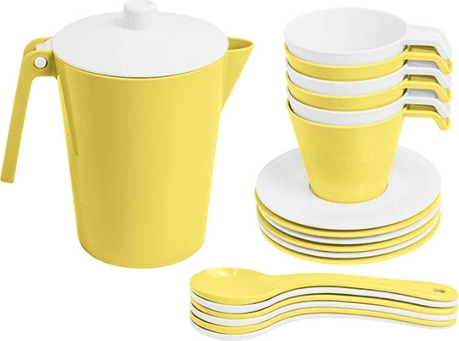 Kávový set ze série Toys in Trends ve žluté, bílé a šedé barvě je nenahraditelnou hračkou pro každé dítě, které si rádo hraje na role. Skvěle se hodí na intimní čajový dýchánek pro 6 osob a malá hostitelka se zde zábavnou formou naučí pravidla etikety a prostírání.
