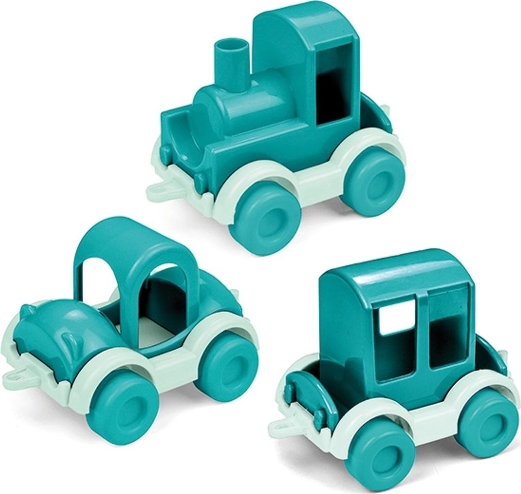 Sada Kid Cars Trio ze série Toys in Trends v syté tyrkysové, mléčné mátové a bílé je oblíbenou hračkou pro nejmenší automobilové nadšence.