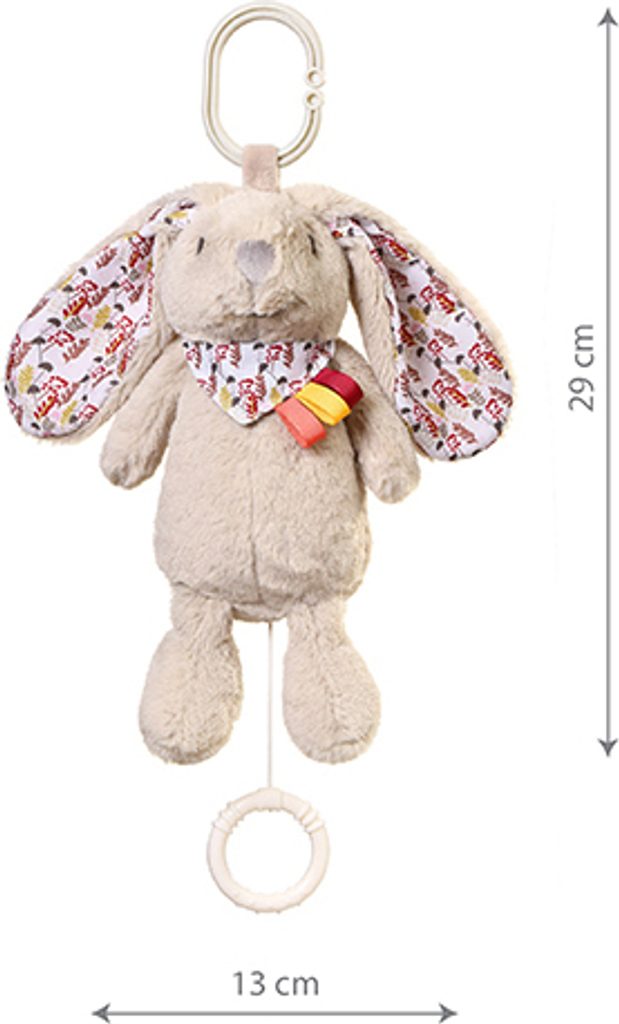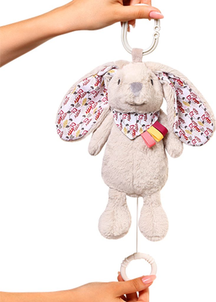 Maskot králíka s hrací skříňkou je usměvavý společník každodenní hry, který stimuluje vývoj vašeho batolete.
