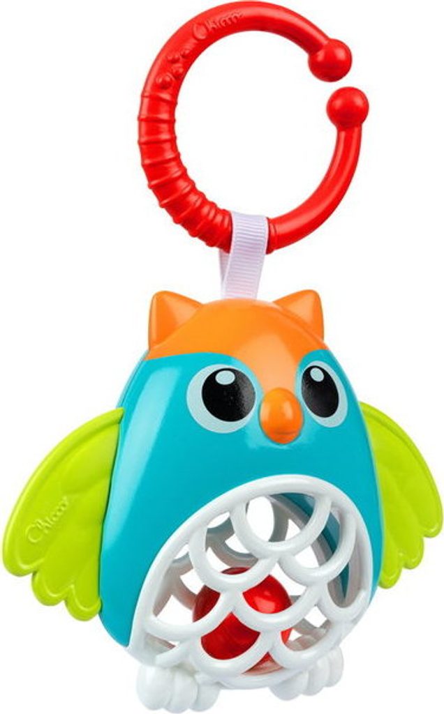 Sova chrastítko je barevná hračka s malým míčkem uvnitř. Po zatřepání chrastítkem se kulička legračně pohybuje v prolamovaném břiše sovy.
