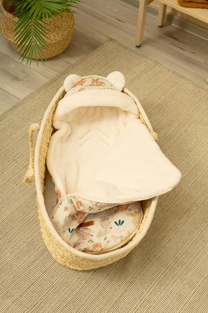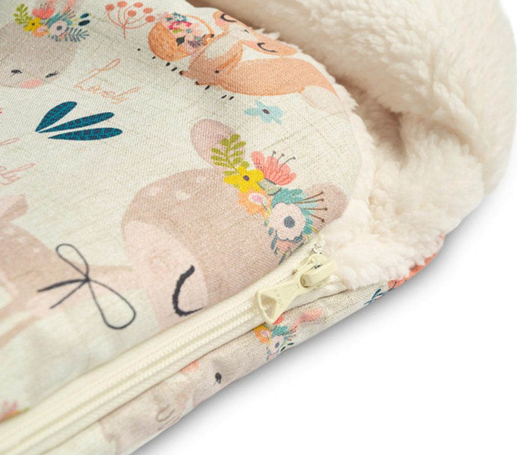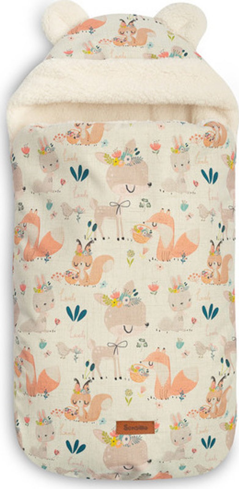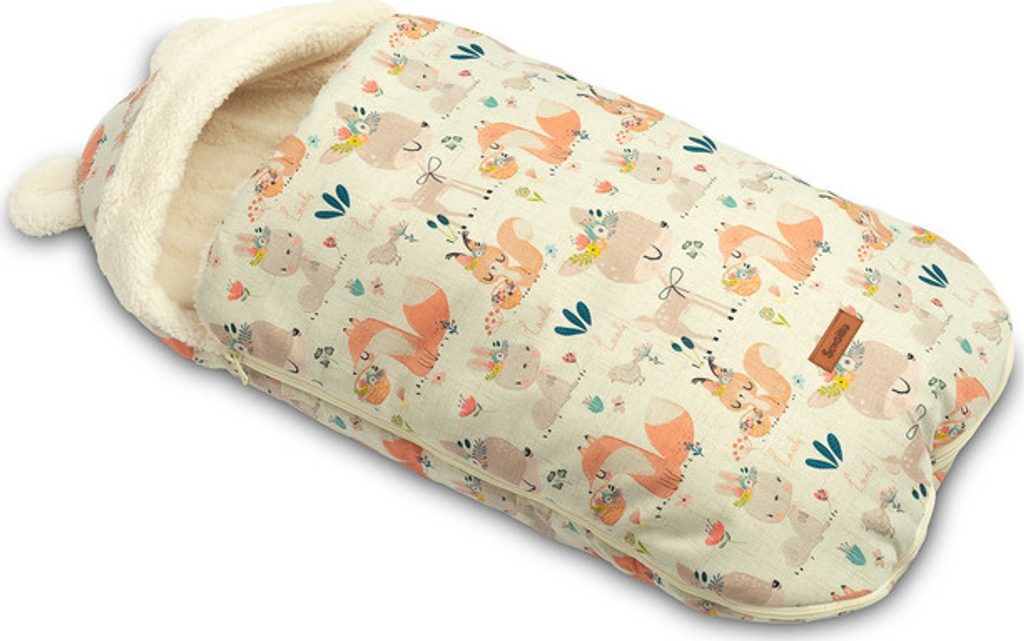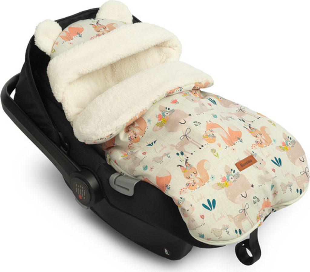 Spací pytel do autosedačky a kočárku byl vyroben s ohledem na nejmenší děti. Uši všité do kapuce a jemný vzor ji činí okouzlujícím. Vrchní vrstva je kvalitní voděodolná látka s krásným vzorem. Uvnitř je nadýchaná silikonová netkaná textilie, která chrání před chladem. Vnitřní vrstva je vyrobena z velmi jemného a příjemného plyše, který poskytuje dodatečné teplo. Má dva zipy, které umožňují odepnout spacák z levé nebo pravé strany a také zcela rozepnout přední část. Spací pytel má otvory pro 3-bodové bezpečnostní pásy. Dá se s úspěchem použít v nosítkách, gondolách a dokonce i sáňkách. Je věnována dětem ve věku 0-18 měsíců.