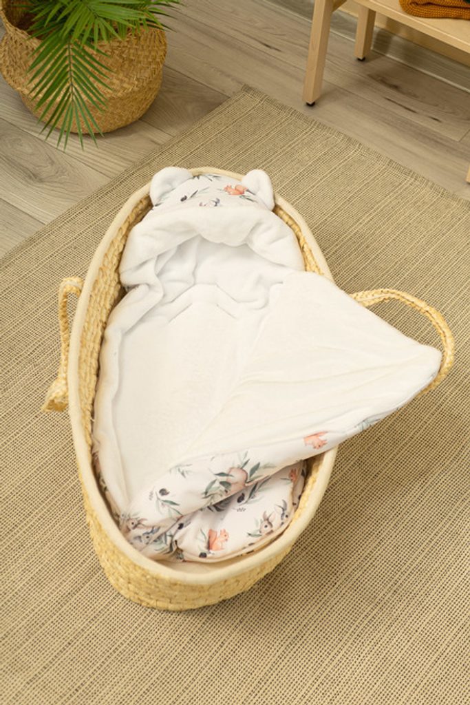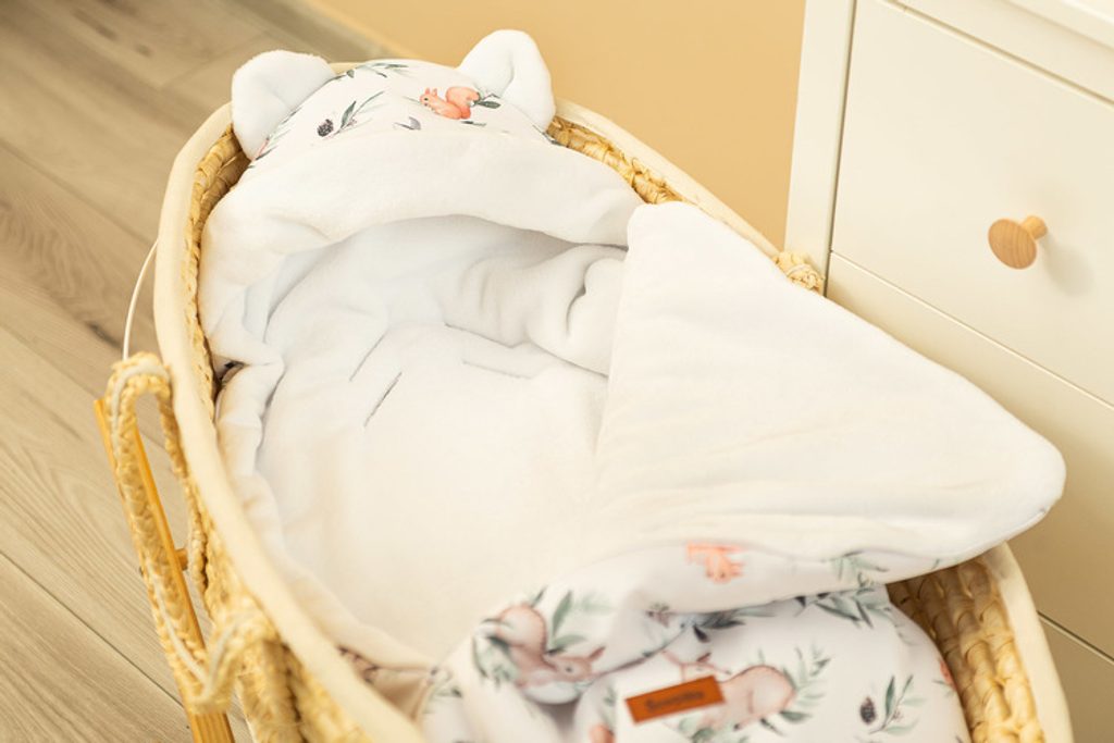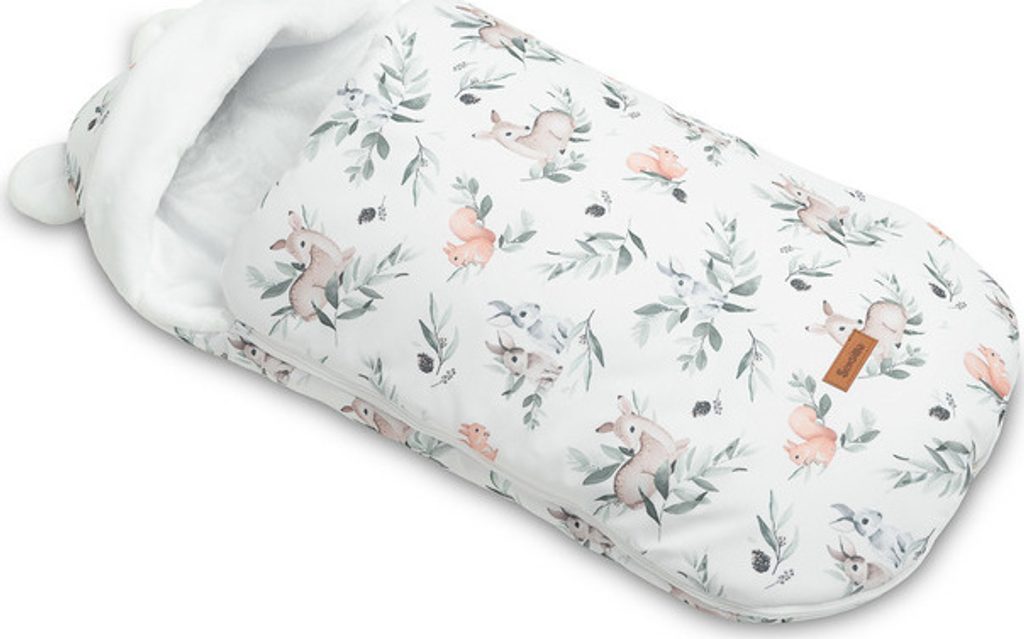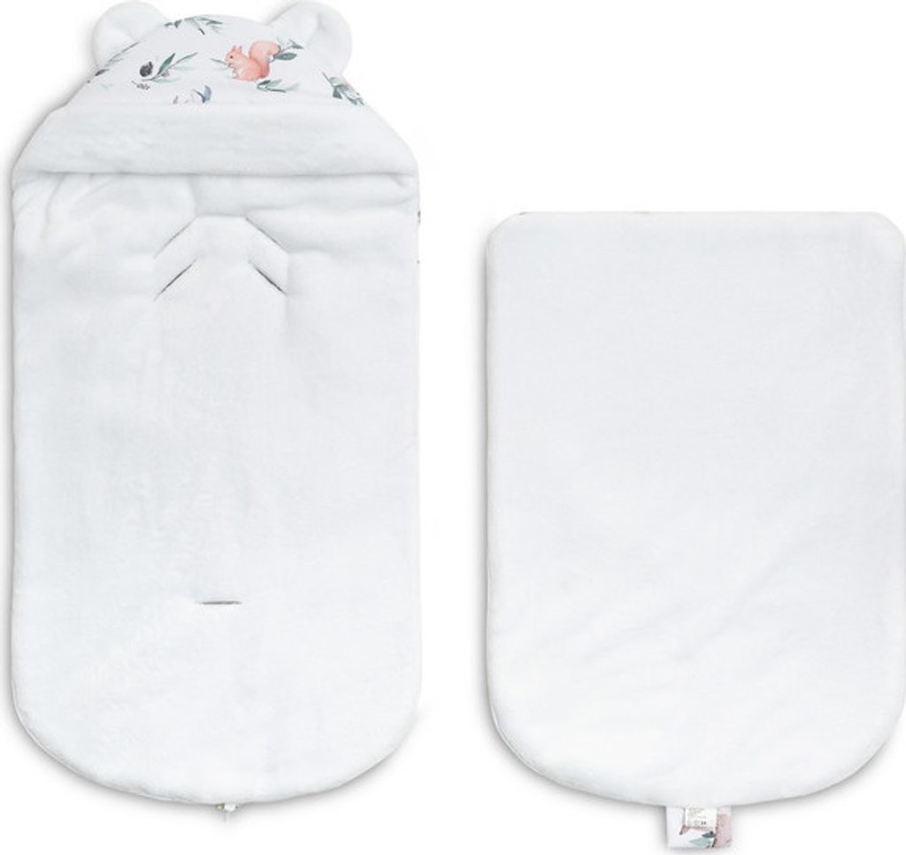 Spací pytel do autosedačky a kočárku byl vyroben s ohledem na nejmenší děti. Uši všité do kapuce a jemný vzor ji činí okouzlujícím. Vrchní vrstva je kvalitní voděodolná látka s krásným vzorem. Uvnitř je nadýchaná silikonová netkaná textilie, která chrání před chladem. Vnitřní vrstva je vyrobena z velmi jemného a příjemného plyše, který poskytuje dodatečné teplo.