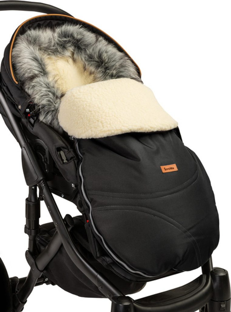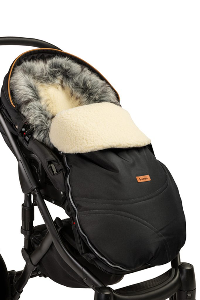Zimní fusak do kočárku s vlněnou vložkou - černá