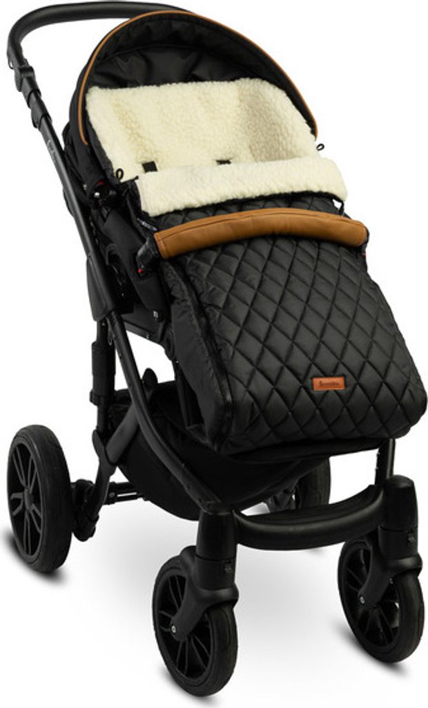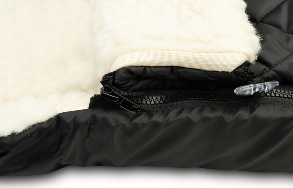 Zimní fusak do kočárku s vlněnou vložkou - černá