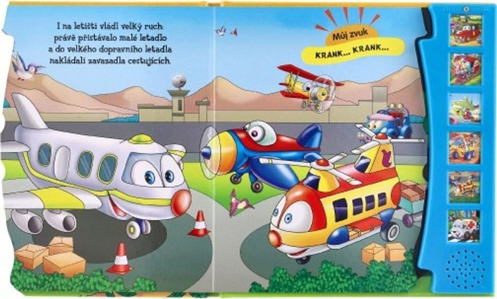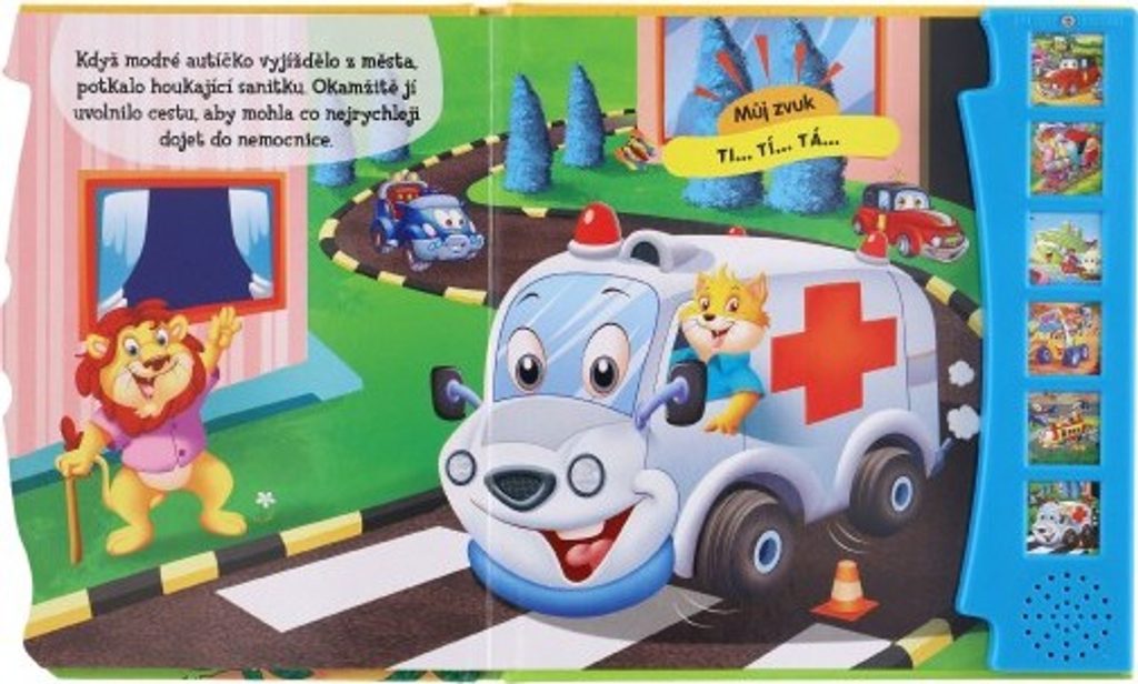 Zmáčkněte, prohlížejte obrázky a poslouchejte! Dětská kniha obsahuje krásné ilustrace, které zaujmou malé milovníky autíček. Stisknou tlačítko a mohou si poslechnout, jak dělají oblíbené dopravní prostředky, např. mašinka, parník, nakladač, sanitka... CZ verze.